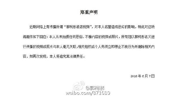 提起郭柯彤,不得不提到她的不雅视频风波。今年6月初,曾参演《克拉恋人》、《新白发魔女传》、《麻辣女兵》等电视剧的演员郭柯彤被曝有不雅视频意外流出,随后在微博、论坛制造出连锁效应,吸引大批网友围观讨论。