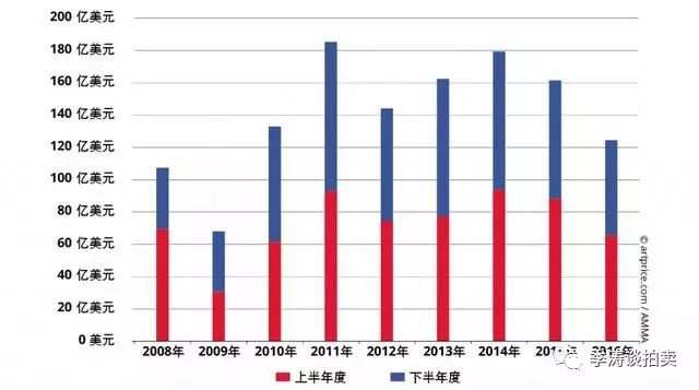 2008年至2016年全球拍卖总成交额半年度变化统计表