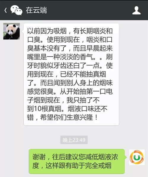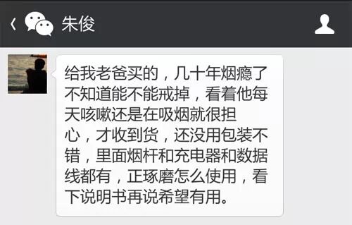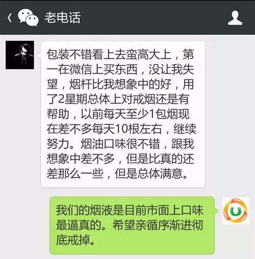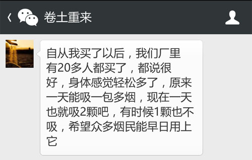 东西好不好,戒烟有不有效果,客户满意不满意。我们说了不算,下面截取一些客户的使用反馈,100%真实,不是自卖自夸而是便于您充分的了解!为您的健康烟总是要戒掉的,这不是为我们,而是为了自己和家人!