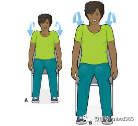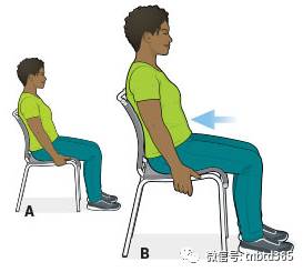 A. 坐在椅子上,背靠椅子,双腿分开,与肩同宽。双臂置于身体两侧,贴近臀部。身体坐直,肩膀向后拉。吸气,放松腹部肌肉。
