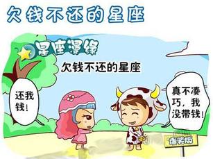 处女座:还我钱!金牛座:真不凑巧,我没带钱!