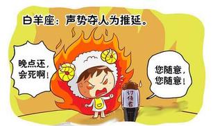白羊座:晚点还,会死啊!(好大的脾气!)讨债者:您随意,您随意。