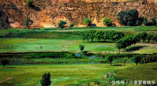 中国陕西山野上,沙漠绿洲真景象。宜人环境喜增多,开眼望,心欢畅,世界国家都慕仰。