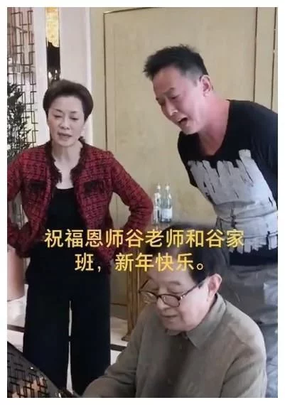身上穿着一套黑色的衣服,但是感觉整个人实在是太瘦了,所以站起来的时候感觉稍微有一点驼背,这样的话整体呈现出来的效果就没有那么好了,还有就是因为现在年纪比较大了,所以笑起来的时候皱纹全部出来了。