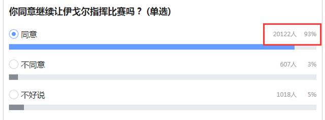 昨晚赛后各种段子纷纷出现,大多是调侃杜锋,笔者发文并作了调查问卷,在2万多人的调查中,有93%投票赞同由伊戈尔继续指挥比赛,希望杜锋永远被禁赛,以后就别回来指挥了(下见截图)