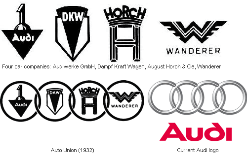 于是Audiwerke GmbH在1910年诞生了。1932年4家汽车制造商Audi, Horch, DKW, 和 Wanderer合并成了一个汽车联盟。这个联盟的logo,4个连在一起的环,随后成为了现代奥迪的车标,但是它只被使用在轿车上。原先的四家厂商仍然以自己的名称和标志生产汽车。
