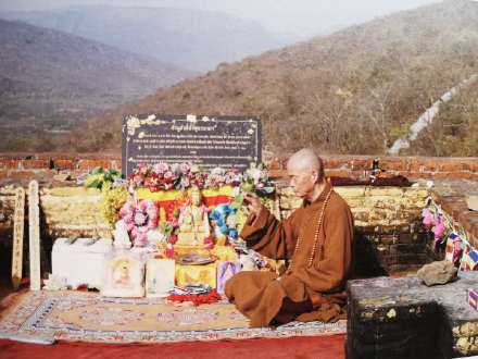 (老和尚在印度灵山佛陀讲经处拈花。)