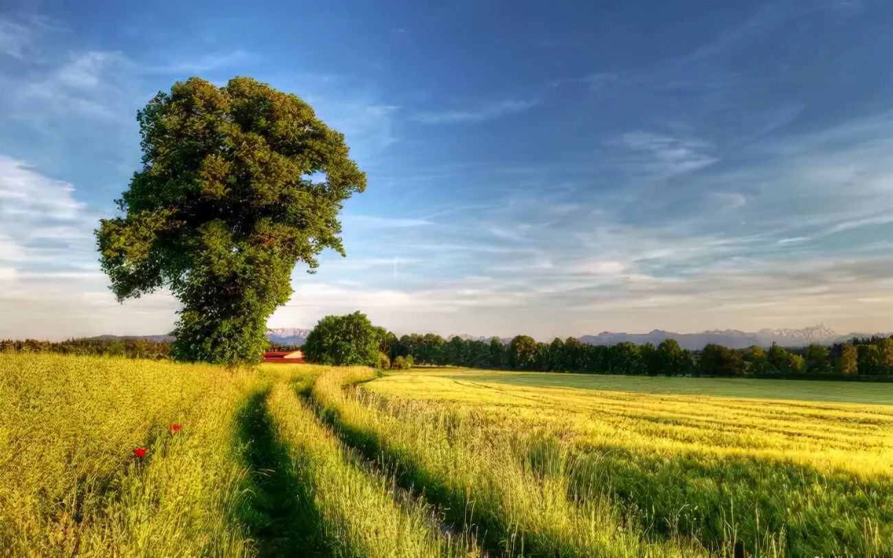 走了大概60米,魏志书便看到了小河。河岸边长着一些柳树,树叶已开始茂密。岸上的青草已经很长,一些叫不出名的野花点缀着草地,使整个河岸显得很好看。远处,河的对岸,是一片绿油油的麦田。正是小麦抽穗的时候,每当微风刮过,麦田便如波浪起伏,波浪中不时翻动出一种微黄。更远处,靠近地平线的地方,散布着几处鸟巢似的村落。