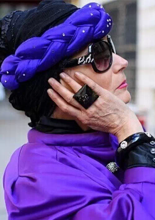纽约设计师(网传64岁),她的化妆品和服饰鲜明,特有的个人风格像银狐一样妩媚妖娆。