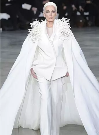 Carmen生于1931年,是意大利和匈牙利混血儿。自1945年登上《Vogue》的封面开始,六度登上《时尚》杂志封面,十四次担任化妆品广告模特儿。2013年1月,82岁的卡门在巴黎时装周压轴出场,霸气十足,成T台最年长模特。
