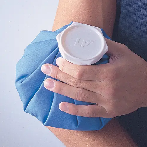 用手轻压袋身,排出袋内气体、然后扎紧袋口,擦干表面的水,套上布套子,放在额部、腹股沟和腋下等处即可。冷敷时间一般为15分钟,每日5-7次。