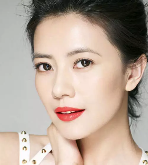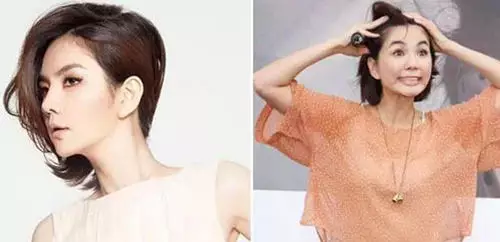杨MM没了刘海后,平扁的额头分分钟暴露缺点,眼神没了神采,难显现在青春活力的风格。
