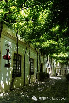 走出酒窖,我们会踏上这条由古老的葡萄树搭成的石头子小路。茂盛的葡萄树形成了蔽日的天棚,为炎热的酒庄开辟了一个清凉的世界。墙上的红衣红帽佛拉门戈女郎的形象早在1935年就已经红遍了西班牙。