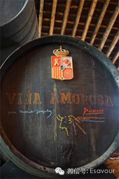 Byass。这头牛就是毕加索的自画像吧。我现在也在猜想是这桶酒贵呢,还是这幅画贵,或者这桶带有毕加索画的酒贵吧。