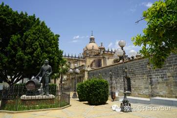Gonzalez Byass酒庄创世人曼纽尔-马里亚-冈萨雷斯的铜像树立在酒庄入口不远处的街头,纪念这位伟大的雪莉酒先驱。