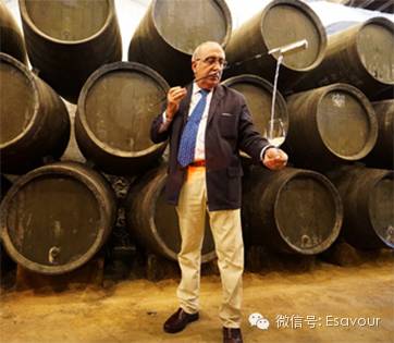 Pedregosa老先生是酒庄最具代表资格的总酿酒师。他就是出生在酒庄,闻着雪莉酒的香气生长在酒庄,一生都工作在这里。他为我们展示了神奇的Flor的生长与发展,揭示了雪莉酒的酿造秘密。