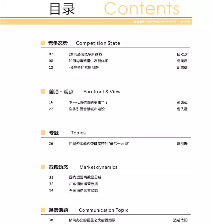 《2015通信竞争新趋势》《如何构建流量生态新体系》《4G竞争的营销创新》让你了解2015年的竞争态势;