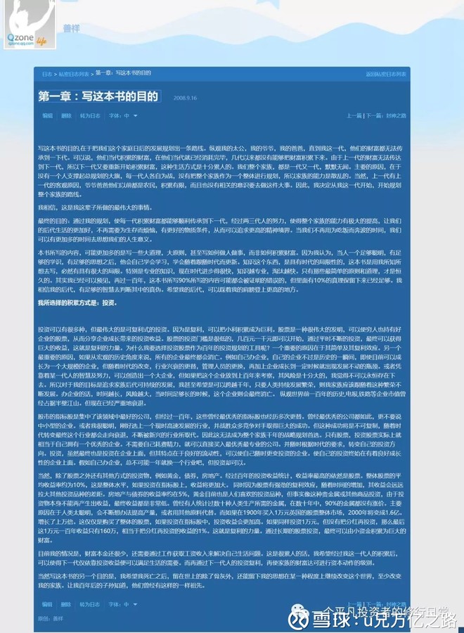 即使我无法完成,我还有子子孙孙,如同愚公移山一样,通过保守的投资,获得保守而稳健的收益,随着时间的复利,这个宏伟的蓝图最终会被完成。一切不过只是早一代人与晚一代人的区别而已,对于整个家族传承千年来说,早二十年与晚二十年,没有任何意义,我从不纠结。