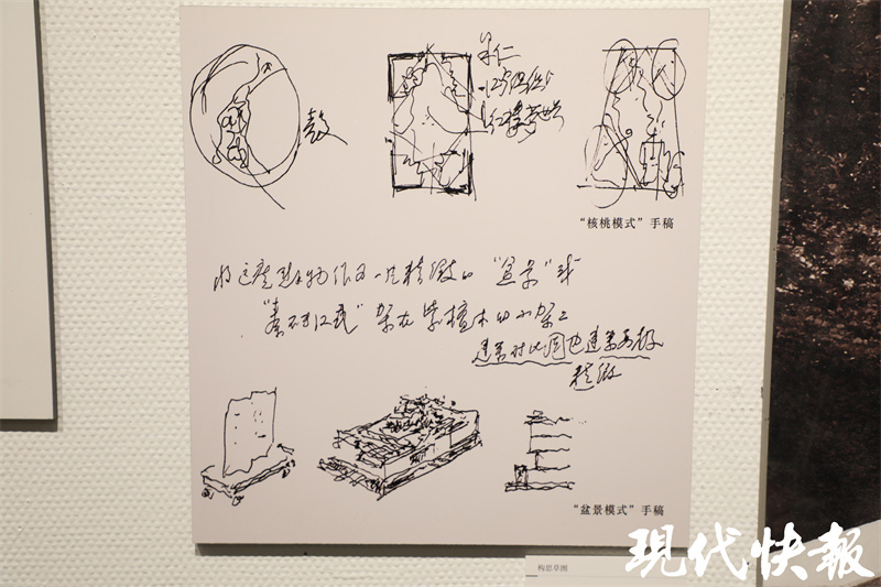 红楼梦博物馆的选址位于江宁织造府原址,但设计中衙署部分已经建成南京图书馆,恢复重建已无可能。因此,吴良镛先生在设计中采用“核桃模式”和“盆景模式”,塑造都市山林,体现红楼梦的艺术意境。现场还特意展示了吴良镛先生的设计手稿。
