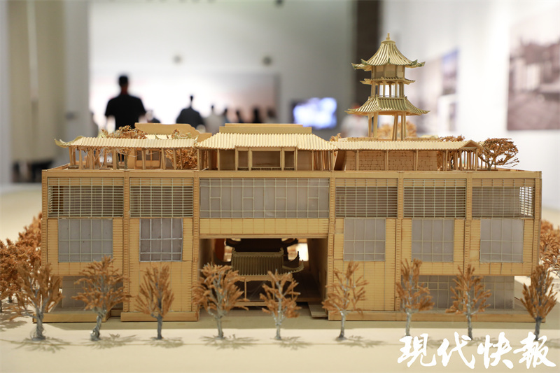 走进2号展厅,一座座精致庭院的建筑模型出现在眼前。从南望北,建筑叠叠高起,按照1:100进行微缩的红楼梦博物馆(江宁织造博物馆)建筑模型,如同一幅江南山水画,将现代建筑和传统园林建筑完美结合,展示出来。