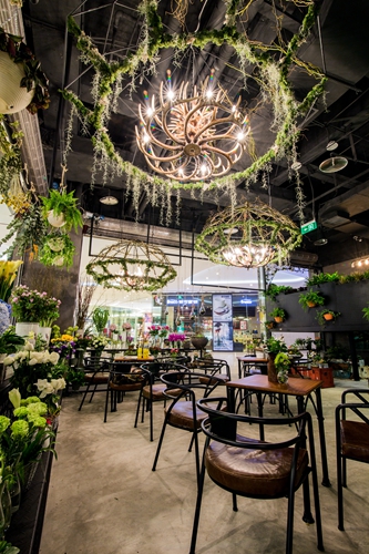 花香咖啡店是由深受重庆本土高端客户欢迎的绿野花果坊和蔓延花艺生活馆打造的,集花艺、咖啡、休闲于一体,场所充满绿植,氛围自然清新,非常适合做DIY体验派对。