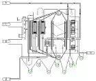 低压缸为反向分流式,每个低压缸一个外缸和两个内缸组成,全部由板件焊接而成。汽缸的上半和下半均在垂直方向被分为三个部分,但在安装时,上缸垂直结合面已用螺栓连成一体,因此汽缸上半可作为一个零件起吊。低压外缸由裙式台板支承,此台板与汽缸下半制成一体,并沿汽缸下半向两端延伸。低压内缸支承在外缸上。每块裙式台板分别安装在被灌浆固定在基础上的基础台板上。低压缸的位置由裙式台板和基础台板之间的滑销固定。