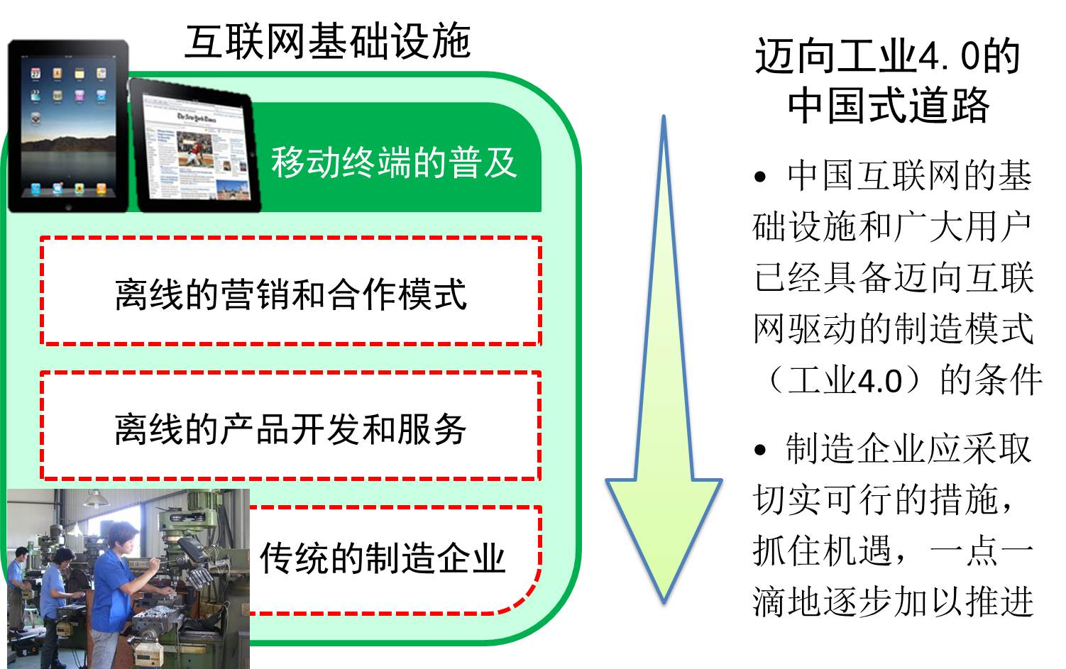 如果说德国提出工业4.0,是大踏步向前走,我们要立即回头看如何赶紧补上工业2.0和工业3.0的课,可以快,但无法逾越,欲速则不达。那么是否暂时把工业4.0放在脑后呢?不是,而是立足当前国情积极探索中国式工业4.0的发展道路。