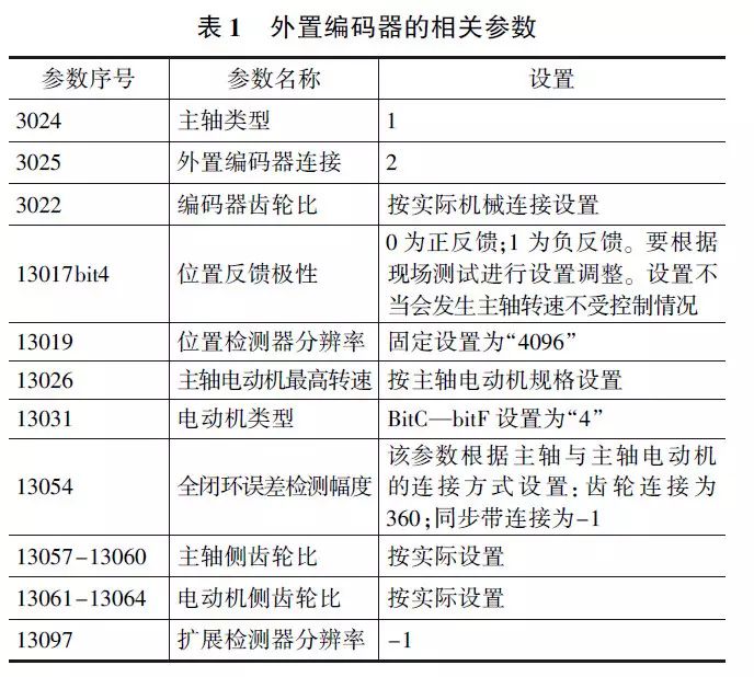 (3)重新检查了与使用外置编码器相关的参数。表1是相关参数。