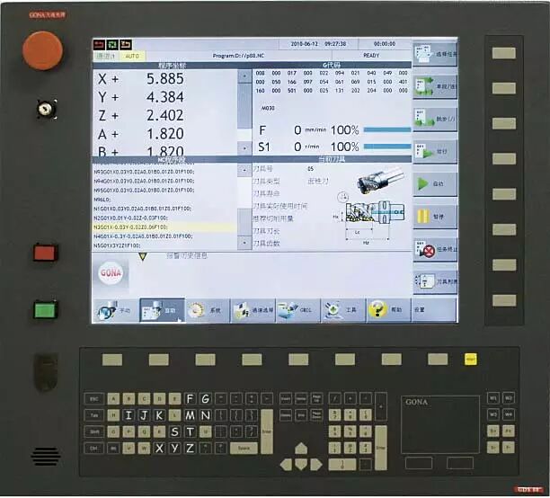 大连光洋GNC60高档数控系统的主要特点包括:采用基于光纤介质的高速数控现场总线GLINK2.0;高速实时信息点对点传输;多轴的运动指令同步输送;实时内核GRTK;开放式数控系统软件体系结构;支持空间误差补偿;在线刀具测量和工件测量;多轴联动、多通道控制:8通道、128轴控制;双轴同步驱动控制;高速、高精度控制:最小插补周期0.125ms,程序前瞻2000段;在线监控和信息集成;自备UPS电源,为系统非正常断电提供系统退出保护;GMDL编程向导,简化用户应用编程计算;优秀的五轴加工能力,简化5轴编程;安全的PLC,为操作者安全和设备安全提供保障。