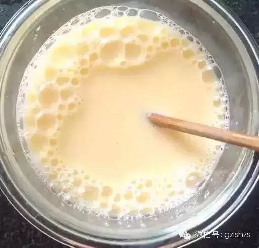 然后将漂浮在鸡蛋液表面的气泡全部捞出来