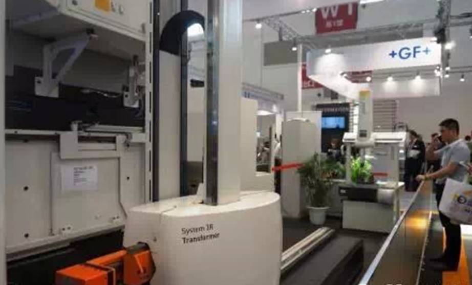 在W1馆的GF展台,他们展示了一条为精密模具量身定制的自动化生产线。由一台机器人Transformer连接在精密模具制造中典型应用的高速铣削加工中心、精密数控电火花成形机和一台测量机组成。这条自动化生产线配有4m长的导轨,20工位的工件库和40工位的电极库,还配有自动化车间管理软件,约可承重200kg。拥有这条自动化生产线,可实现24小时加工,帮客户提升生产力高达280%。