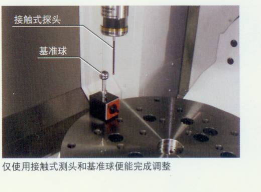 大隈开发五轴调和系统的原因,是希望让客户能够长久把精度保持好,其原理是用一个基准球,然后用红宝石探头进行测量,通过机床的智能化系统,对上述这些精度误差进行自动补偿,达到机床的验收精度标准。