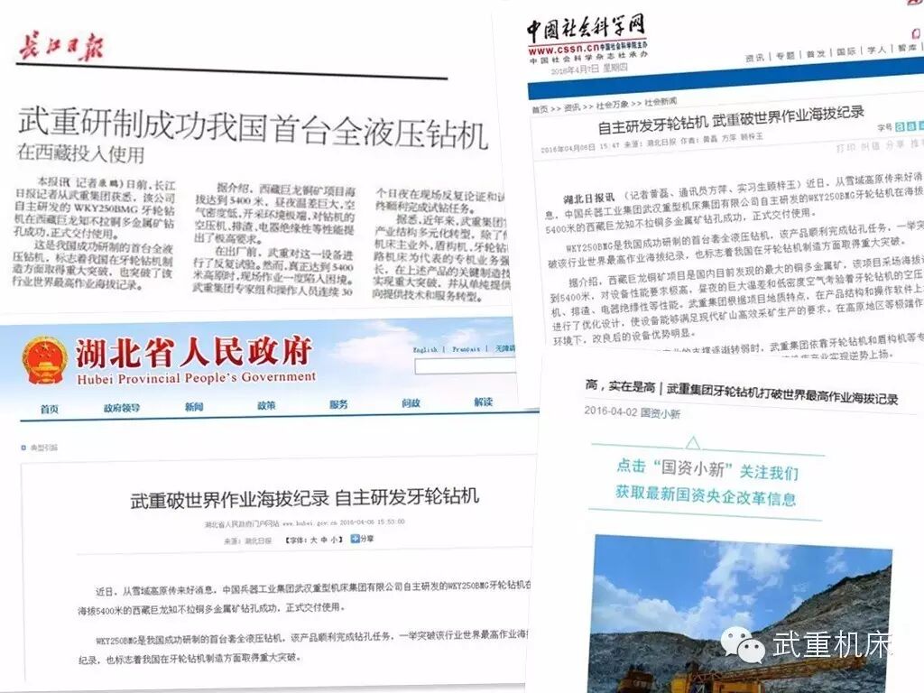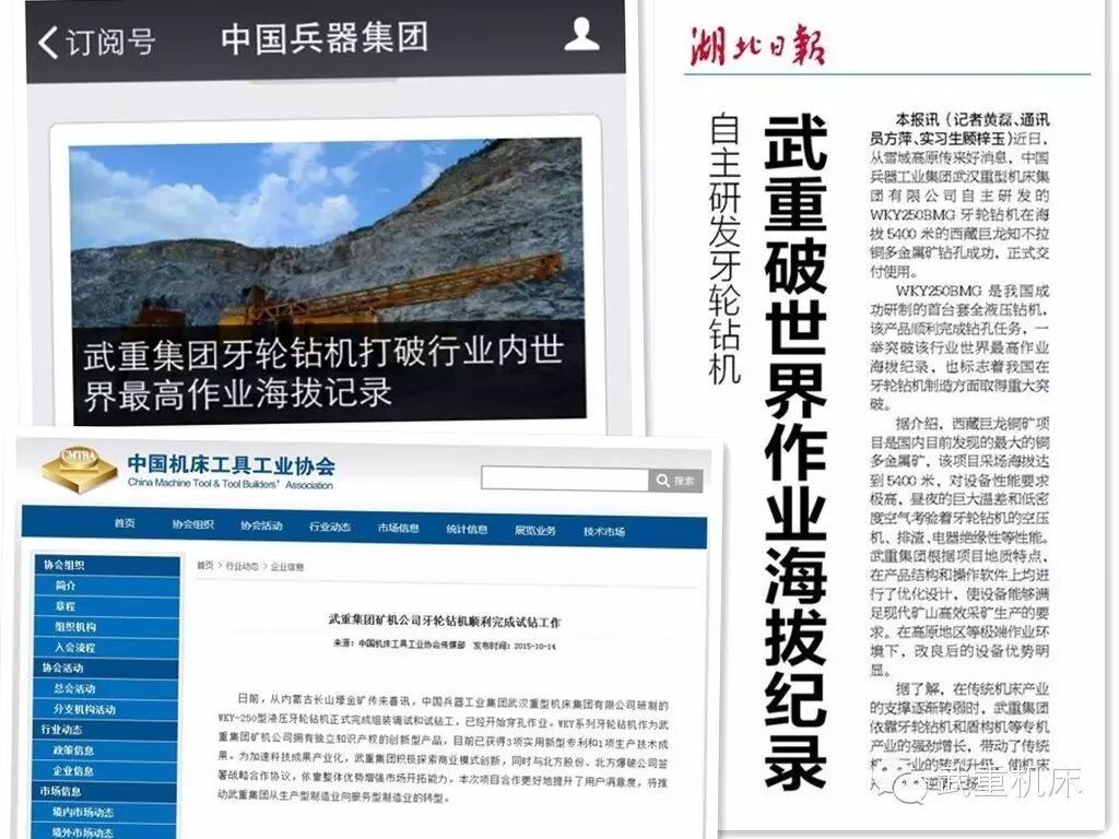 近日,武重集团牙轮钻机打破行业内世界最高作业海拔记录的消息,在国内各大主流媒体、网站频频“露脸”,就连国务院国资委官方微信平台—“国资小新”也进行了转载,今天就由小编带您走进关注背后。