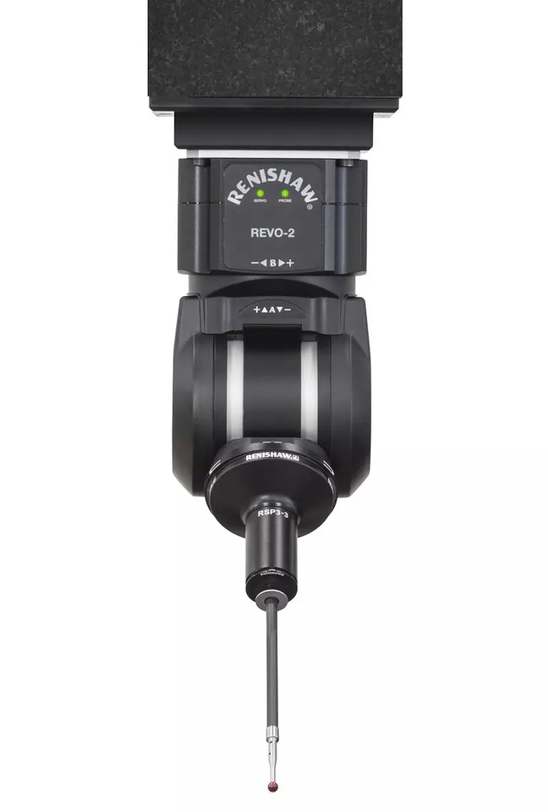 雷尼绍隆重推出的REVO-2是一款全新升级的产品,是用于坐标测量机 (CMM) 的革命性多传感器五轴测座。REVO-2及其全新坐标测量机控制器UCC S5在借鉴成功的REVO多传感器系统基础上推陈出新,具有更强大的功率和通信能力,可使用RVP影像测头等最新的REVO传感器。该测座还可以扩大在负A轴上的移动范围,从而提高工件的可测触性并降低测针设定的复杂性。