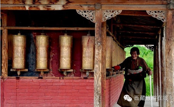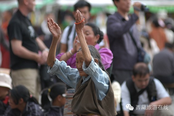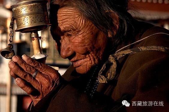 此时你也会仿佛被此中氛围浸染,象一个虔诚的藏传佛教徒般,紧跟着转经的人流以顺时针的方向围绕着千佛廊,八廓街,再到林廓路,路上时不时的是磕长头的老人和喇嘛,满是岁月印记的脸上布满的只有虔诚和庄重,一步一磕头,伴随着口里念诵的经文,坚定的朝着远走去......................