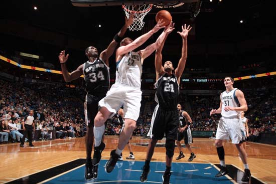 2010年11月24日,4胜11负的森林狼主场迎战12胜1负的马刺,面对蒂姆-邓肯这样NBA历史上最伟大的大前锋,勒夫出场46分钟,19次投篮命中了11个,其中三分球3投1中,9次罚球全部命中,得到了32分22篮板3助攻,而邓肯在30分钟的出场时间里只得到9分13篮板3助攻,只可惜森林狼在第一节结束时领先15分的情况下最终历经1个加时以109-113惜败于马刺令人遗憾。