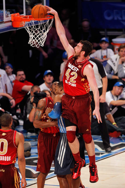 以上只是凯文-勒夫在2010-11赛季精彩表现的缩影。在那个赛季里,他在73场常规赛里场均拿到20.2分15.2篮板2.5助攻,力压德怀特-霍华德等人成为当赛季NBA篮板王,当选进步最快球员,生涯首次参加了全明星正赛。在那个赛季里,勒夫在13场比赛中单场篮板不少于20个,其中11次是20+20的表现,更有4场比赛单场砍下30+20+的数据,其中包括那个惊人的单场31+31的伟大表演!要知道,邓肯这个NBA历史上最伟大的大前锋在整个NBA生涯里一共也只有5场常规赛拿到30+20+的数据,而卡尔-马龙和凯文-加内特这样的NBA顶级大前锋在整个生涯里也只有5次这样的表现。当时他仅仅是一个NBA三年级生,还不满23周岁!你可以想象当时人们对他的未来多么的期待。