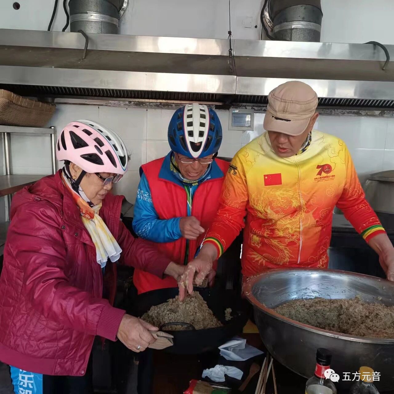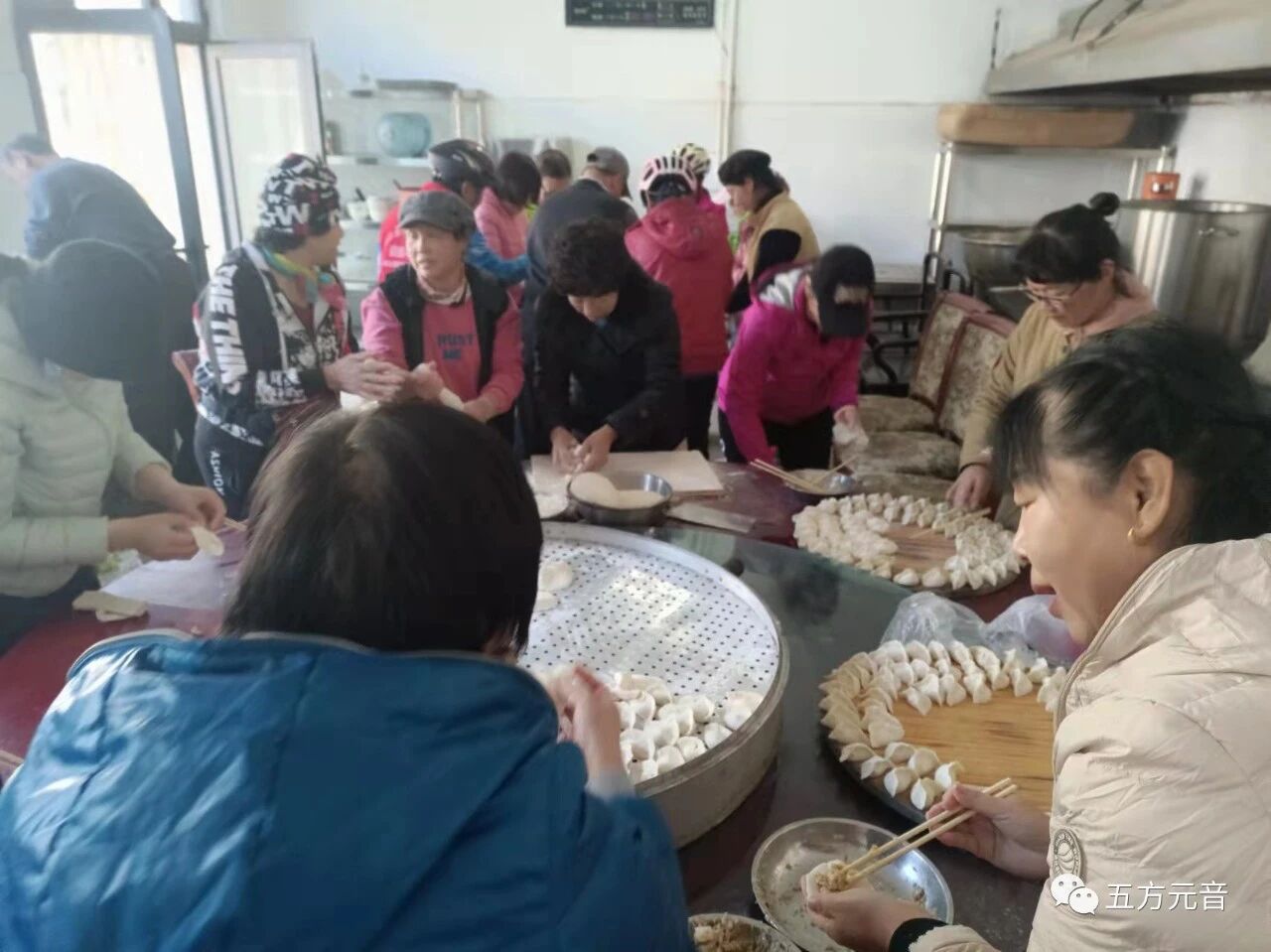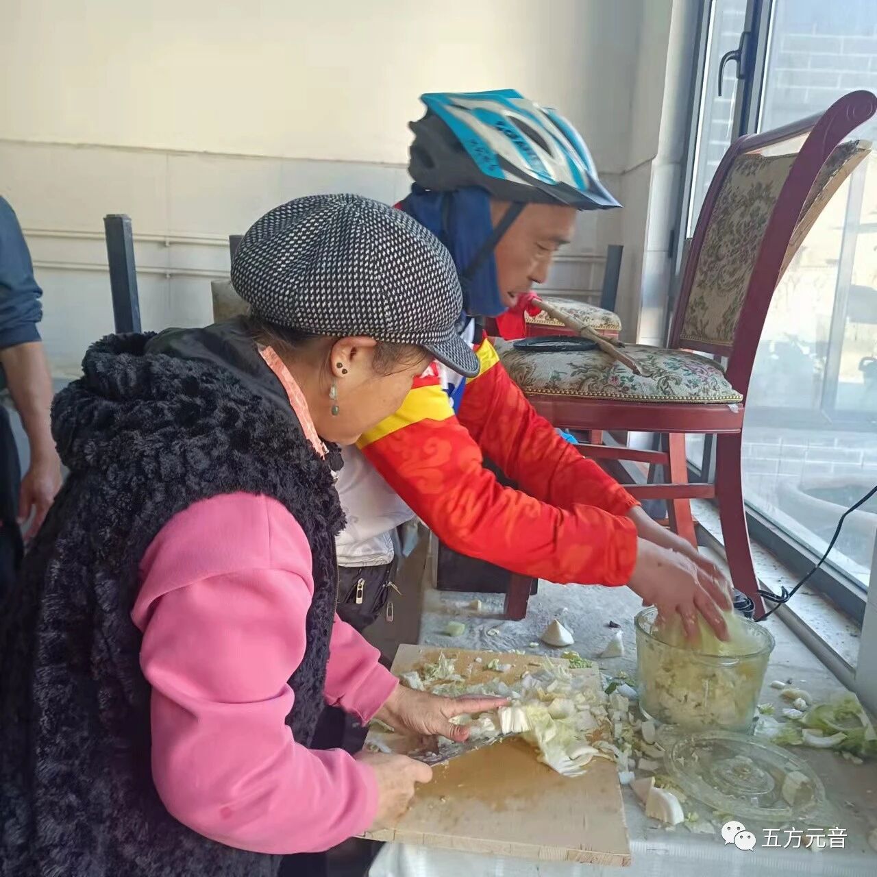 大家放下自行车、洗手、挑馅、垛生姜、和面、烧水都不闲着,各司其职的干着自己本分的工序,简直是个训练有素、一团和气、全部动员的一个集体!乡亲们说:“看看人家这些人多好啊,都会干活,没有一个闲人,这一会就好了,咱还说给人家帮忙呢?根本不用咱,咱赶紧走吧,不能给人家添乱······”或许乡亲们,还说用着传统观念在衡量我们这些现代人的行为·······