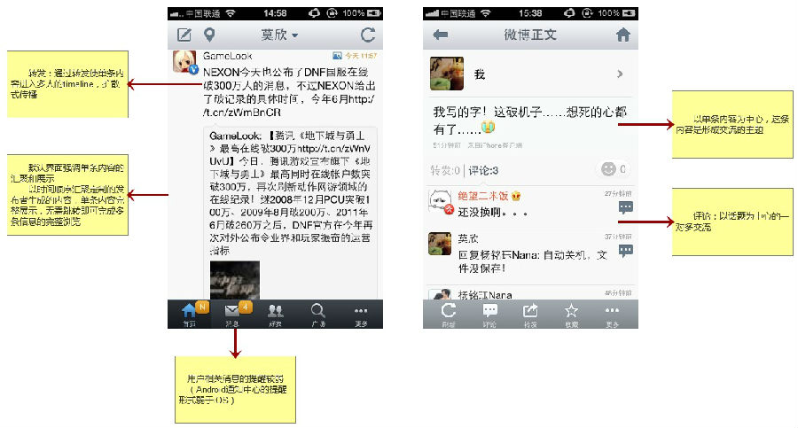 从产品形态看,微信适合对话、提醒,微博适合快速表达、浏览和传播。