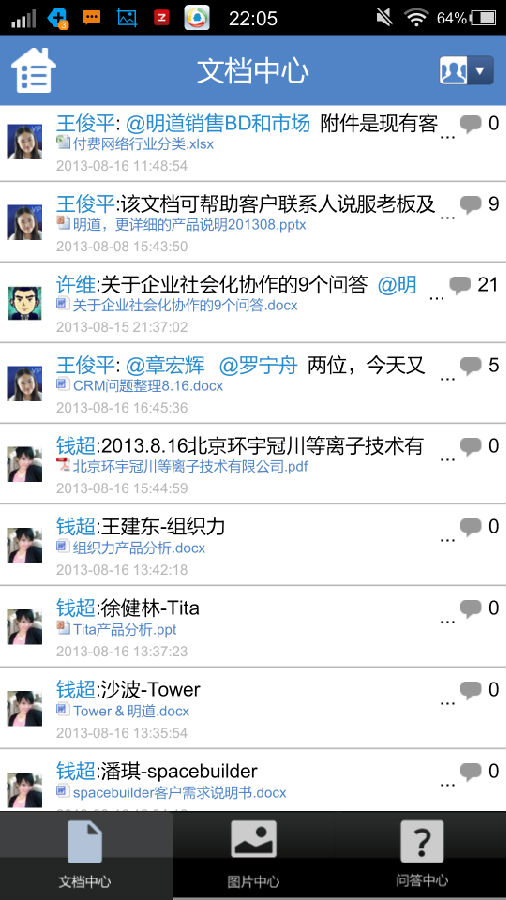 第一条主线是社交关系的引入,这是一个纽带,它把原来的个人办公软件变成了团队办公软件,从而实现了集中群体智慧;