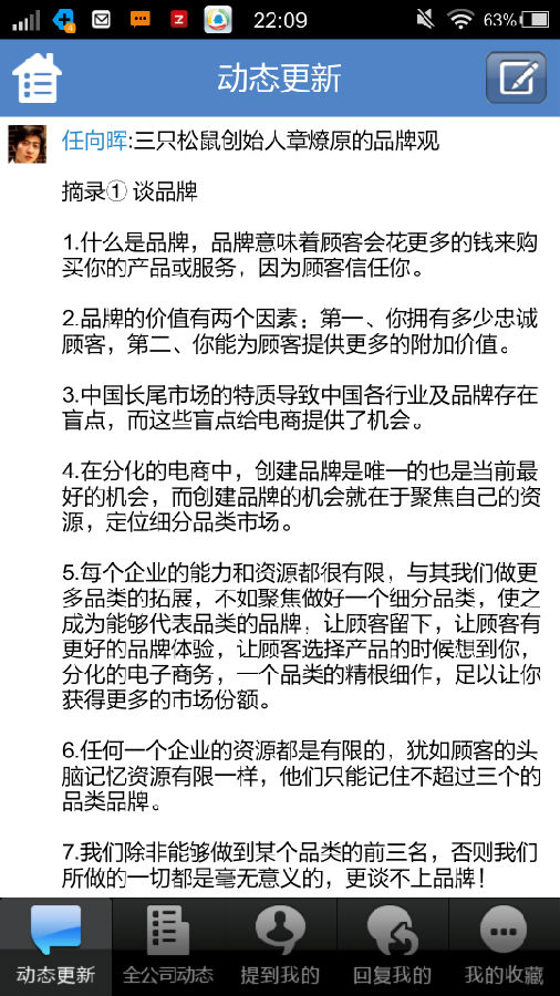 但别忘了,工作就是团队的合作,大家只有有机的联合起来,合作的力量才能够涌现。企业2.0和核心价值是“集中群体智慧,激活人员动力”。通过将分散于企业员工大脑中的知识汇聚起来,降低企业内部信息的沟通成本,形成对外的信息优势。