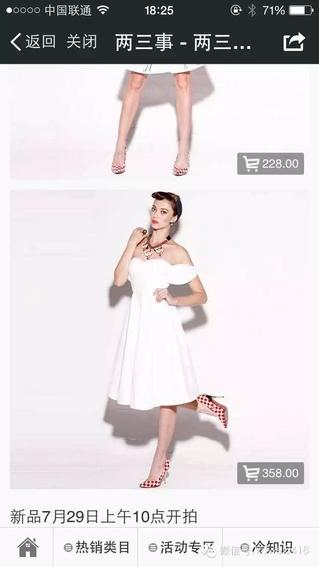 我们看第一个案例“两三事”,他们是卖大女人的服装,每周会有一次上新的通知,他们针对微信微博做他们特色会员的专款,价格比在淘宝和京东要便宜,而且他们每一周会有一次秒杀,在10分钟之内就可以卖出超过一百件。他们还根据会员的特征,给他们的会员打不同的标签,做一些个性化的推送。他们是“上新通知+秒杀”这样的方法。