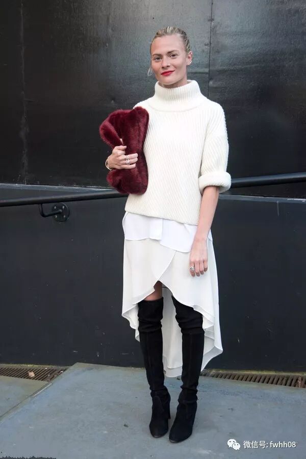 而当高领毛衣遇上纯白时,简直美到无可救药,这个冬天也是出境率奇高,街霸称号当之无愧!