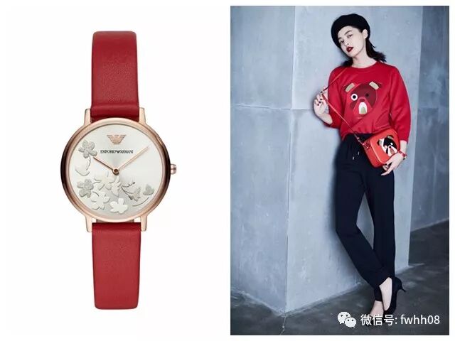 辛芷蕾佩戴Emporio Armani新春红色KAPPA女士腕表AR11114,售价RMB1790元。