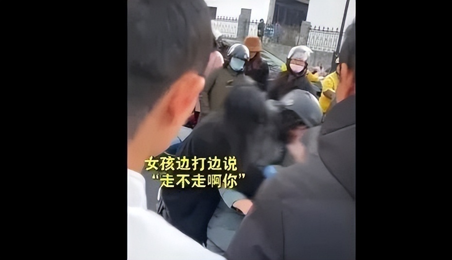 视频里我们看到的是女孩坐在妈妈的电动车后座,情绪失控,不停地用拳头砸妈妈戴头盔的头。