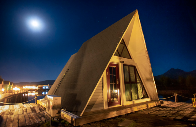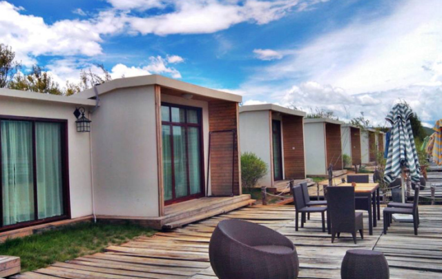以上是营地的三种房型,可供大家选择:苍鹭海景房,临湖(拉市海),也是三种房型中最为高档的房型;黑颈鹤房,是三角形的独立木屋,面朝拉市海湿地(草地);斑头雁房,是联排屋,是最靠近岸边的房型。所以,要想躺在床上拉开落地窗门就能欣赏拉市海湖景,请选择【苍鹭房】。