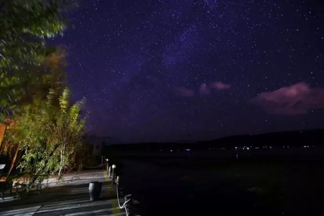 夜幕降临,露台是【观星】的好地点,我们还为您准备了欢迎晚会,家长和宝宝一起学手鼓演奏,让宝宝在欢快的节奏中尽情体验音乐带来的快乐。下图为营地夜景,晴朗的夜空下繁星点点。