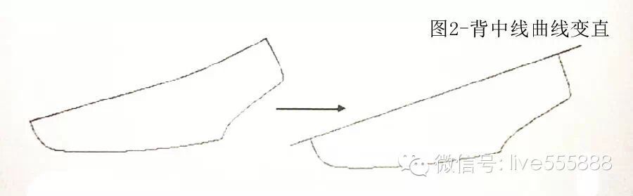 这种方法与三角逼近平面设计法和复样设计法的取跷原理基本相同,是以角度的旋转进行跷度处理的。结果背中线加长,同样需要修整、试帮。