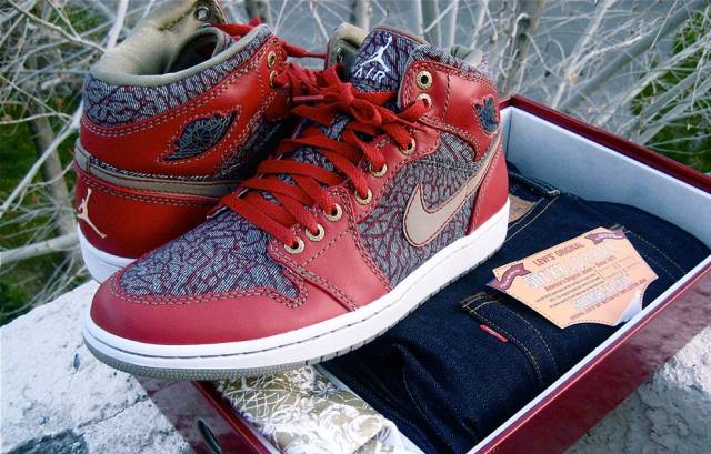 08年著名牛仔品牌Levi’s与AJ合作推出的AJ1套装,套装内还包含一条Levi’s 501牛仔裤,使得其售价也达到了395美元;