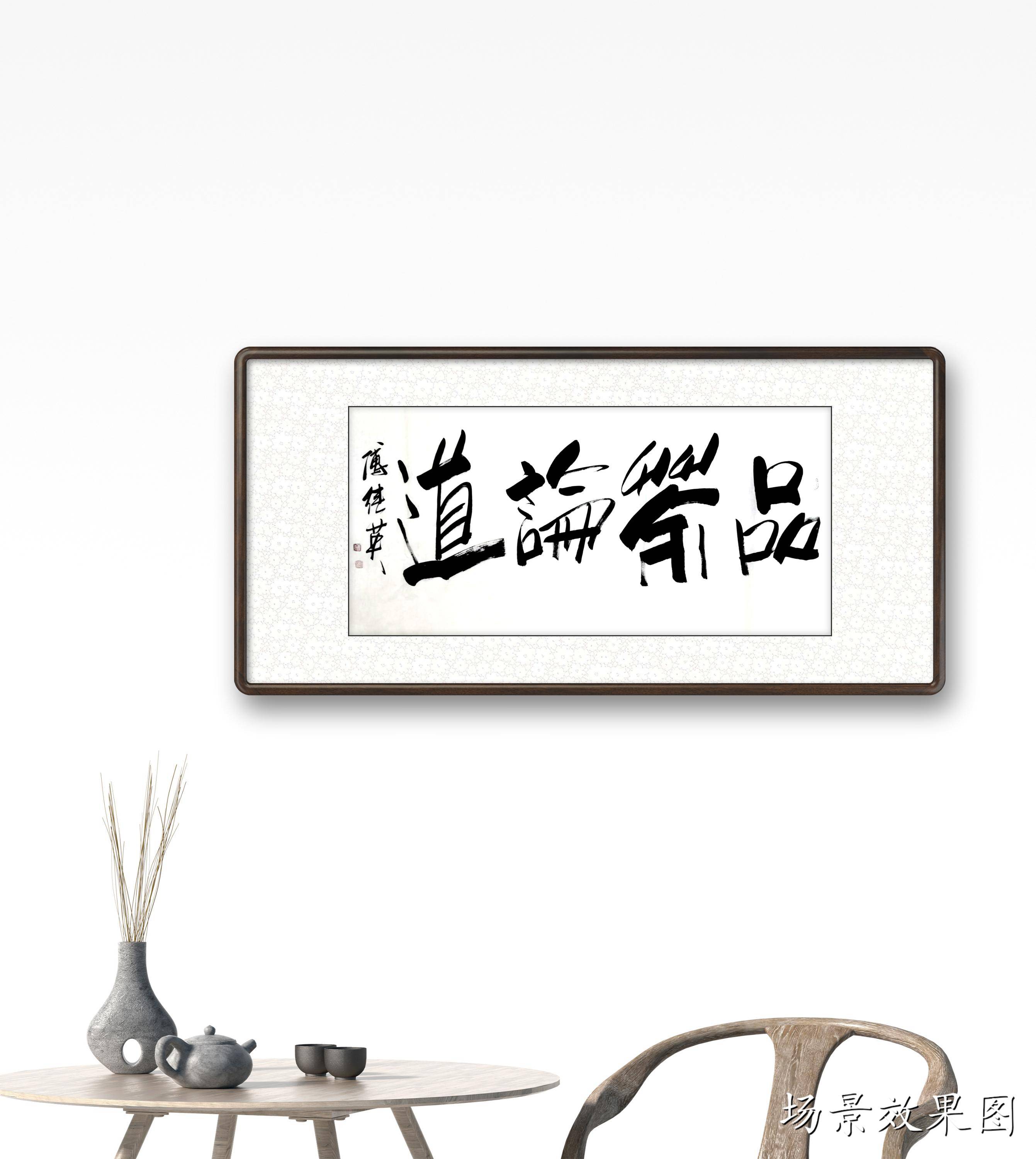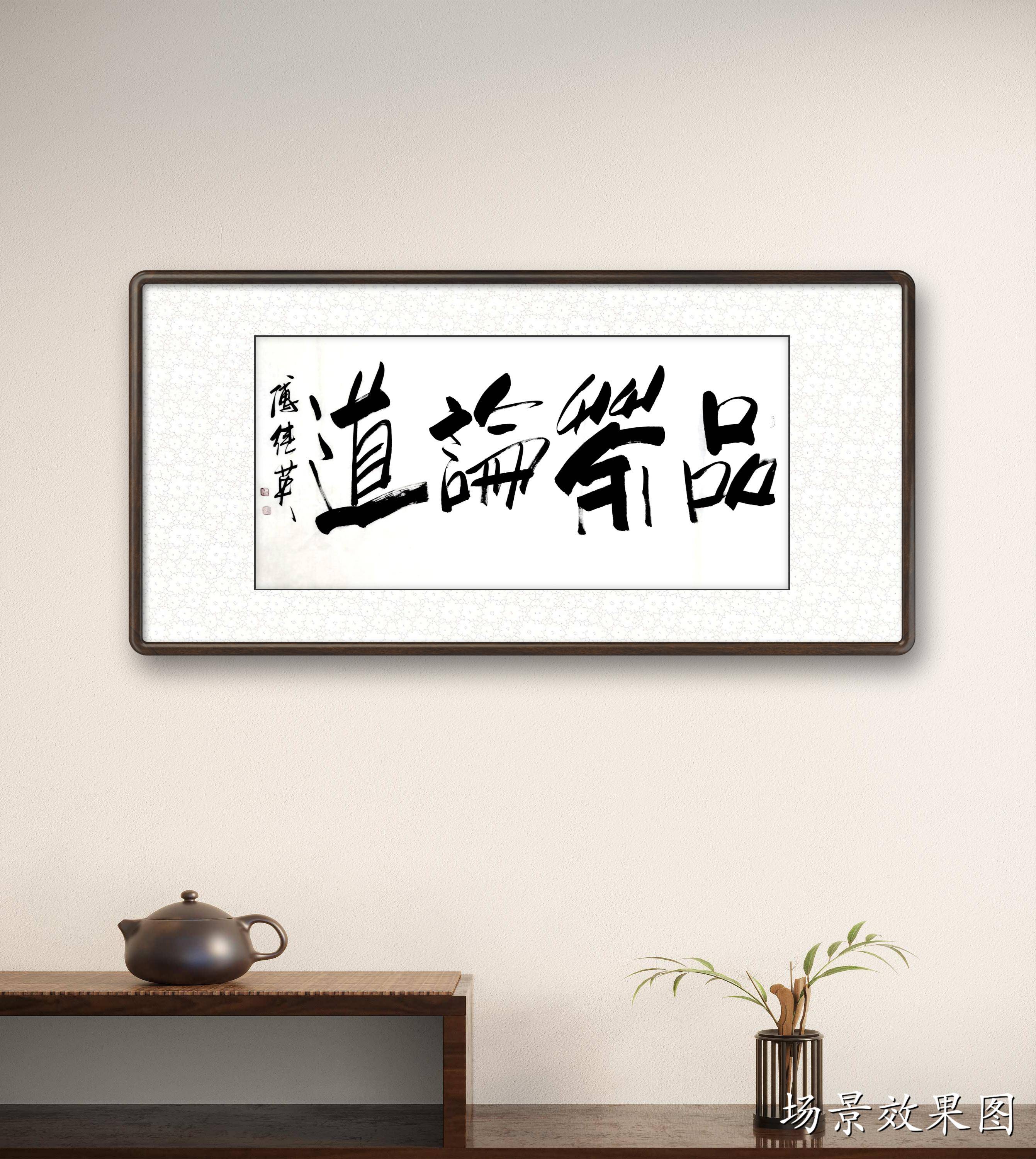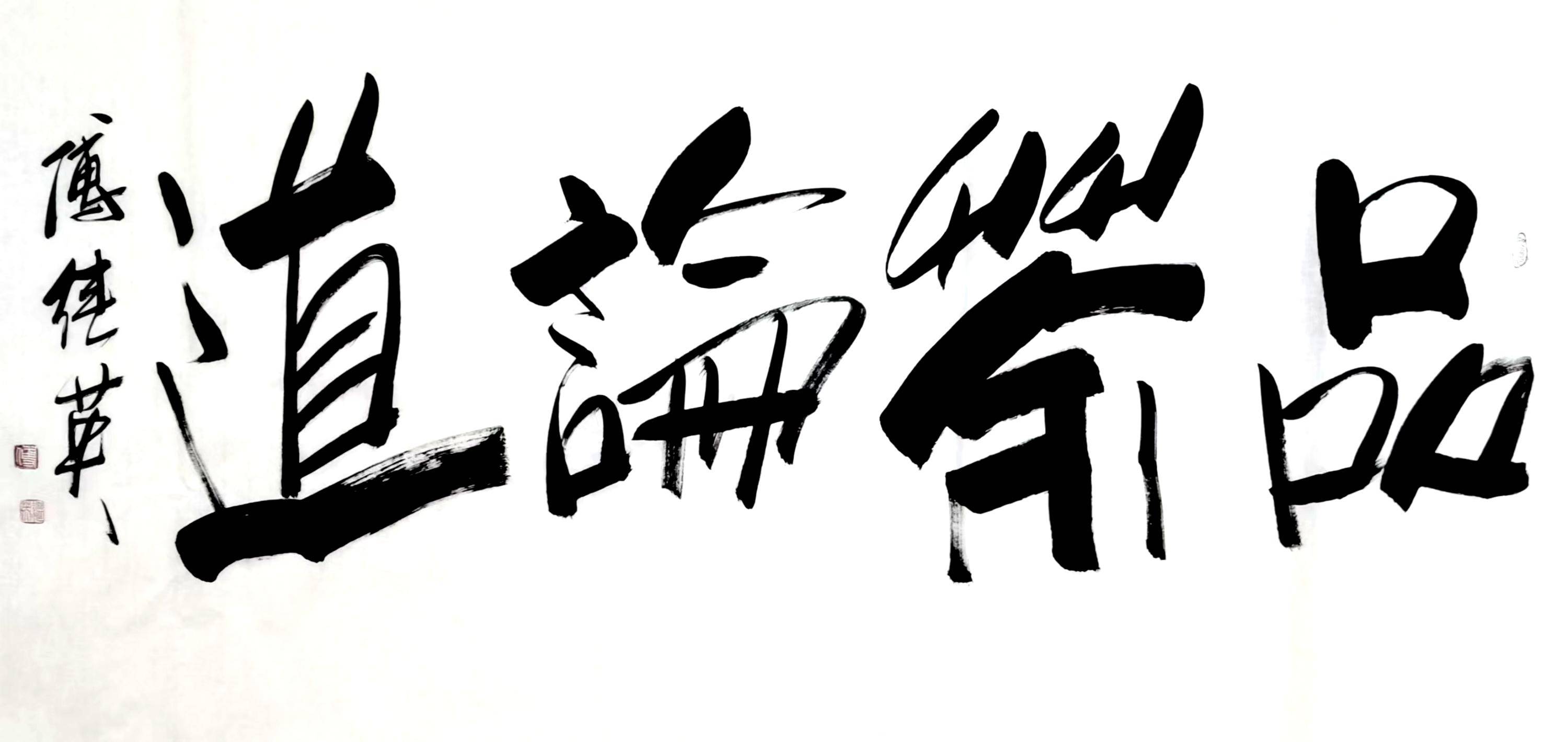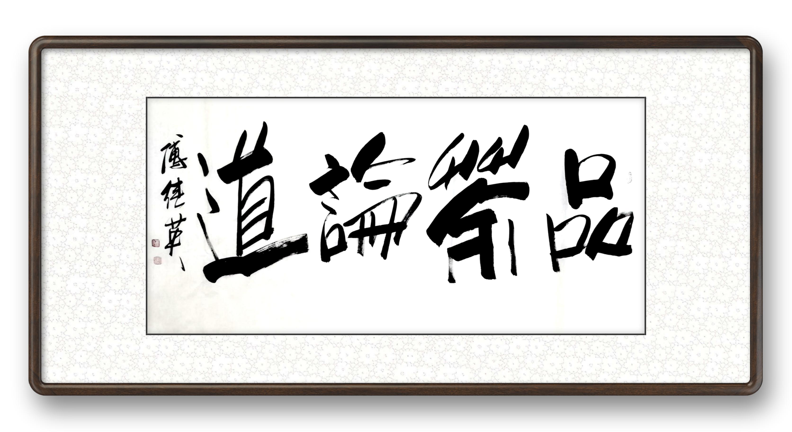 傅继英书法:品茶论道。茶中有大道,悟茶通人生。细细品茶,神清气爽,返璞归真,超凡脱俗,渐入佳境,可以通神,而穷宇宙之理。喝茶能够喝到熟悉的味道,会回想当时坐在这里喝茶的人都聊过些什么,或者想起曾看过的跟茶有关的故事或影像,又或者想起曾一直纠结的事,然后短短几秒的时间突然豁然开朗,这样进入另一种情绪或情状的,就是一种品茶的意境。品茶很多时候是一种偷闲,一场相逢一缕笑容,重在会心,空间的层次感正可以提供一种相逢的“曲折”味道。